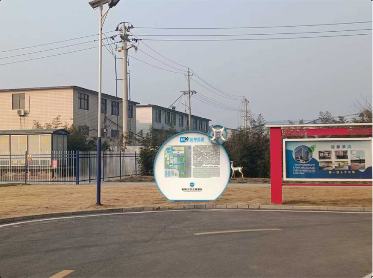 材质选用上,精挑细选坚固耐用且质感现代的金属与复合板材。金属部件经过精细锻造和打磨,呈现出精致的光泽与质感;复合板材经过特殊工艺处理,兼具轻量化与耐候,传递出科技产品的精密气息。同时,在标识牌的排版设计上,采用简洁现代的无衬线字体,搭配清晰明了的图示与科技感光影果,让信息传达既准确又富有视觉冲击力。